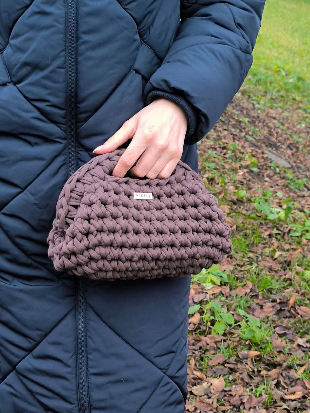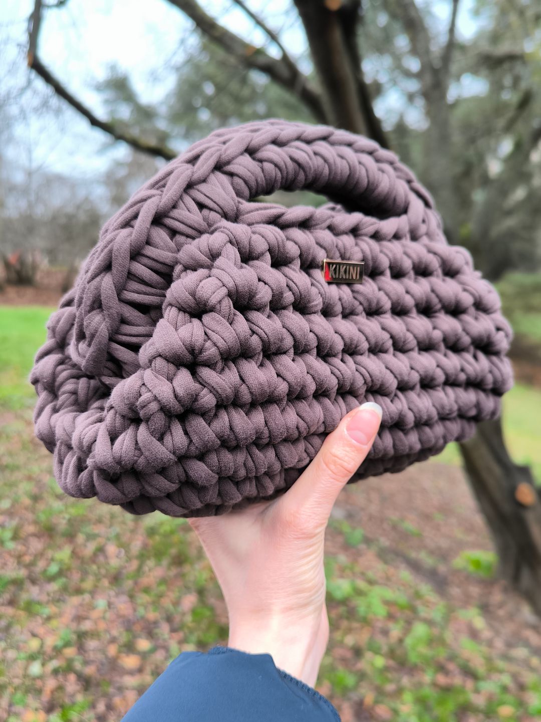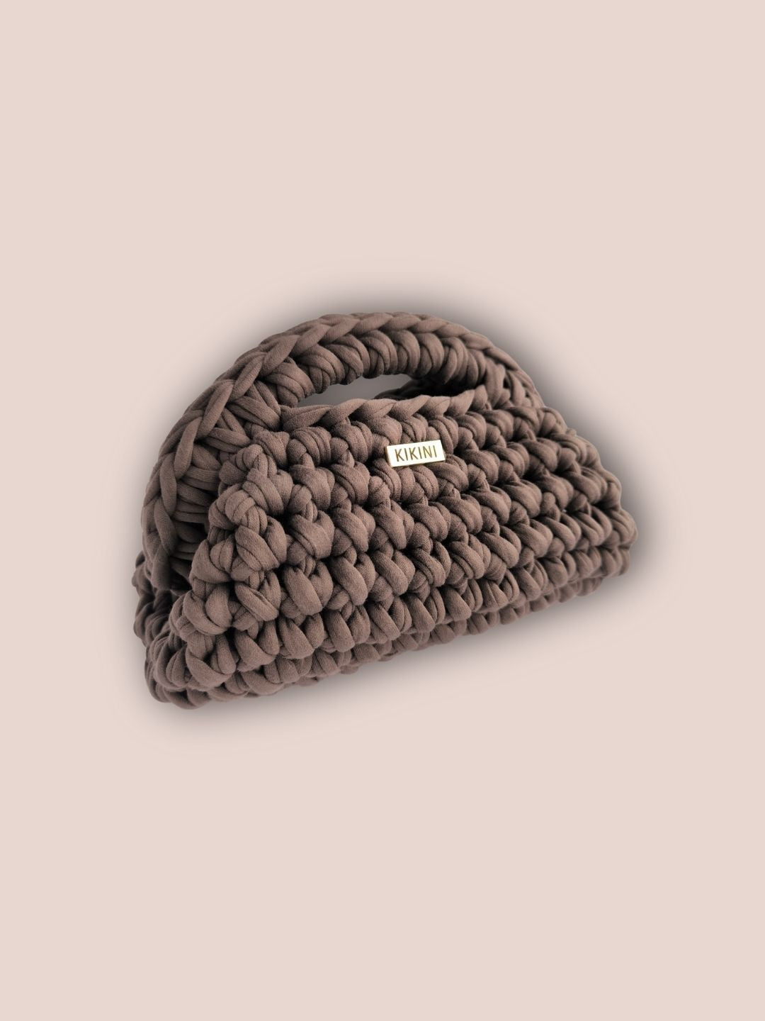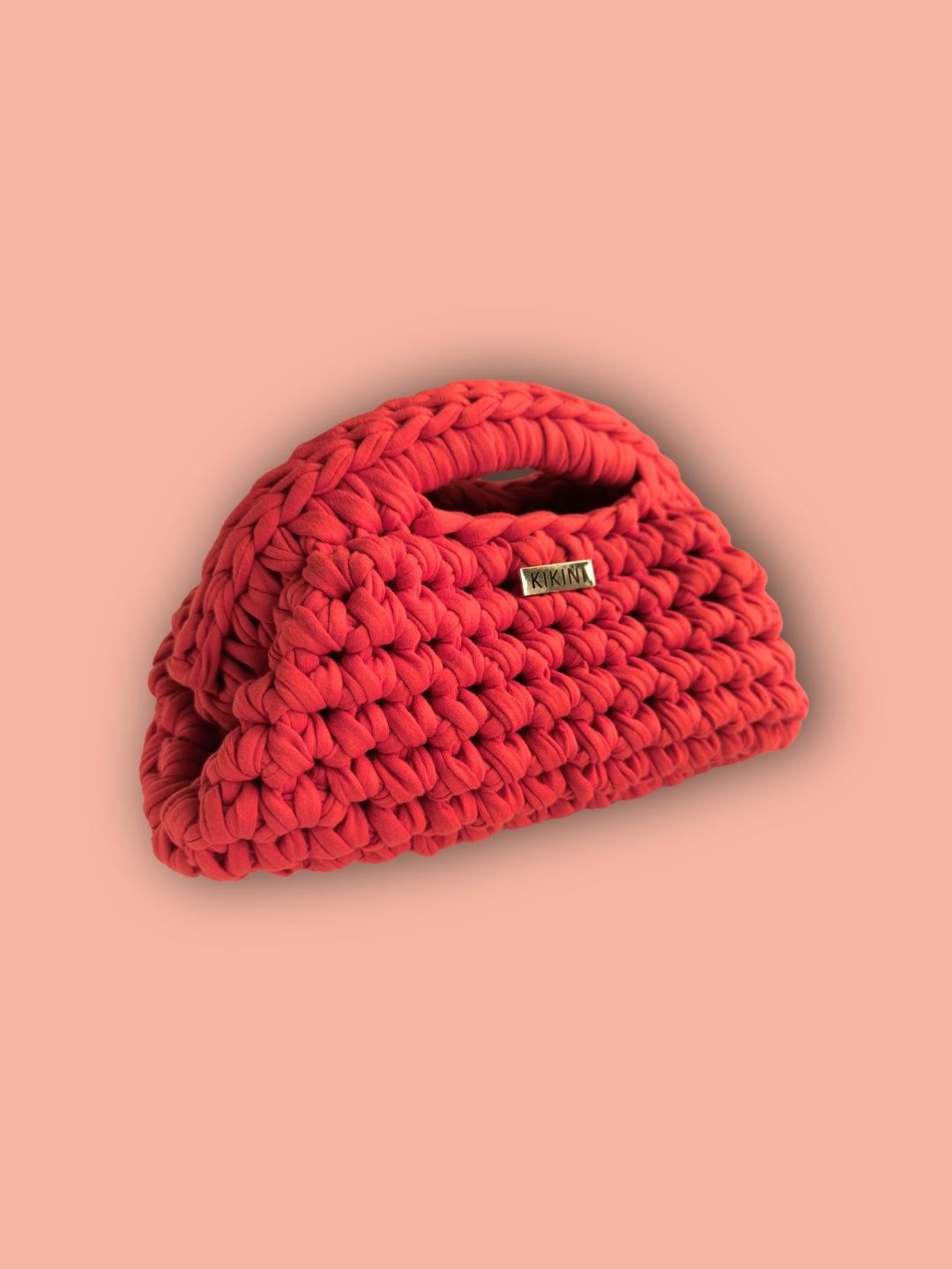 Elegantiška, bet kartu žaisminga delninė nunerta iš perdirbtos medvilnės virvelės. Metalinis užsegimo rėmelis suteikia retro žavesio, o ergonomiškas dizainas leidžia patogiai laikyti rankoje.