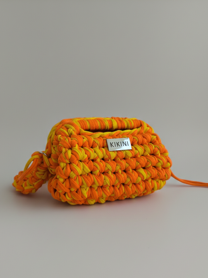 Elegantiška, bet kartu žaisminga delninė nunerta iš dvigubos perdirbtos medvilnės virvelės. Metalinis rėmelis su užsegimu suteikia retro žavesio, o ergonomiškas dizainas leidžia patogiai laikyti rankoje.