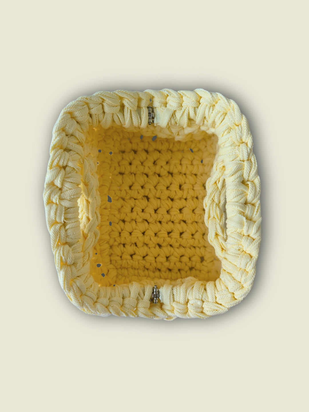 Elegantiška, bet kartu žaisminga delninė nunerta iš dvigubos perdibrtos medvilės virvelės. Metalinis rėmelis su užsegimu suteikia retro žavesio, o ergonomiškas dizainas leidžia patogiai laikyti rankoje.
