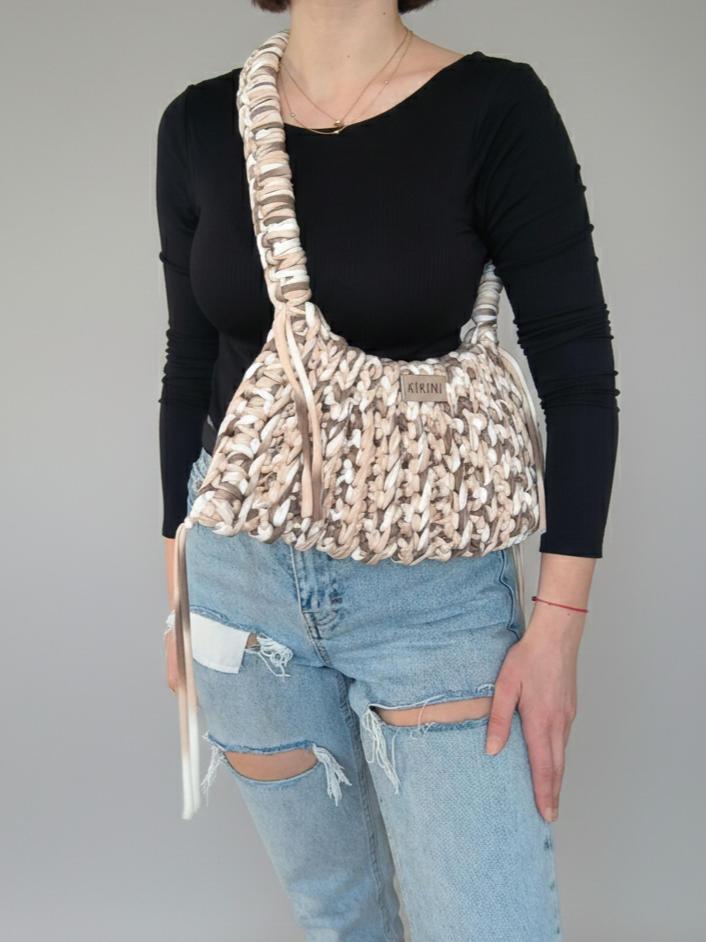 Laisvos formos nerta rankinė – talpi, patogi ir puikiai tinkanti kasdieniam nešiojimui.