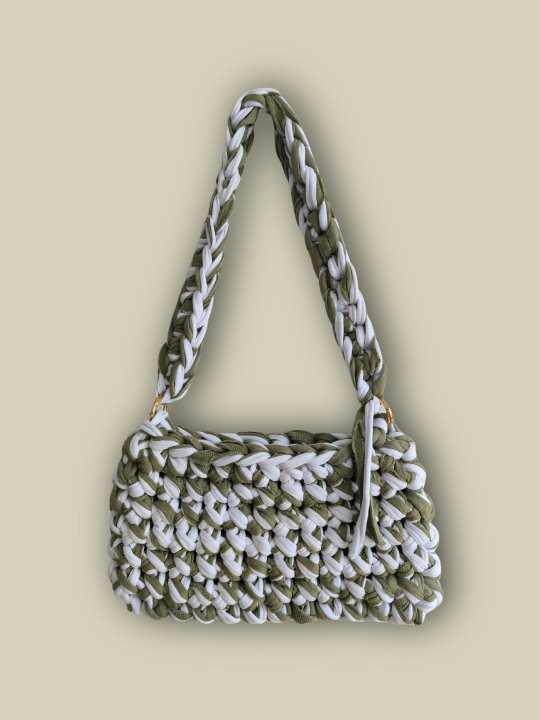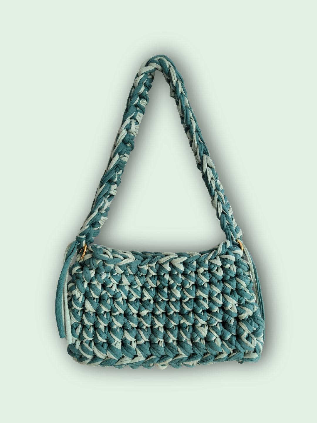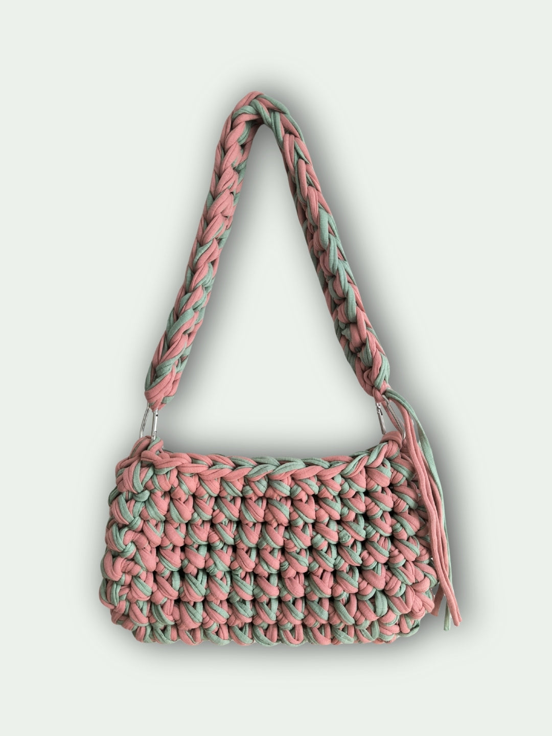 Kompaktiška, bet išraiškinga rankinė nunerta iš dvigubos, perdirbtos tekstilės virvelės – tvirta, stilinga ir draugiška aplinkai.