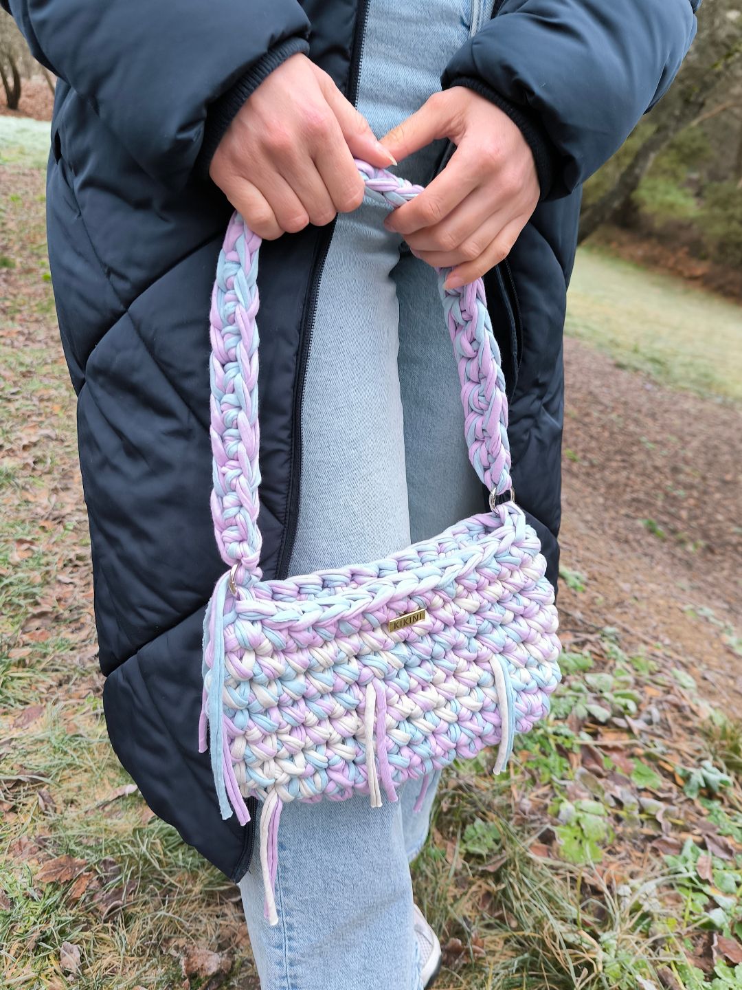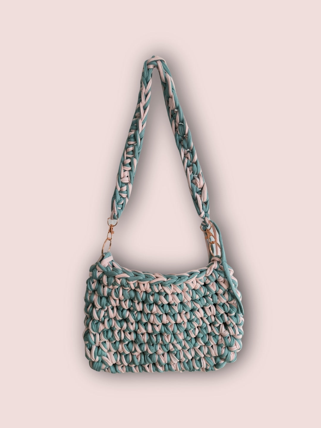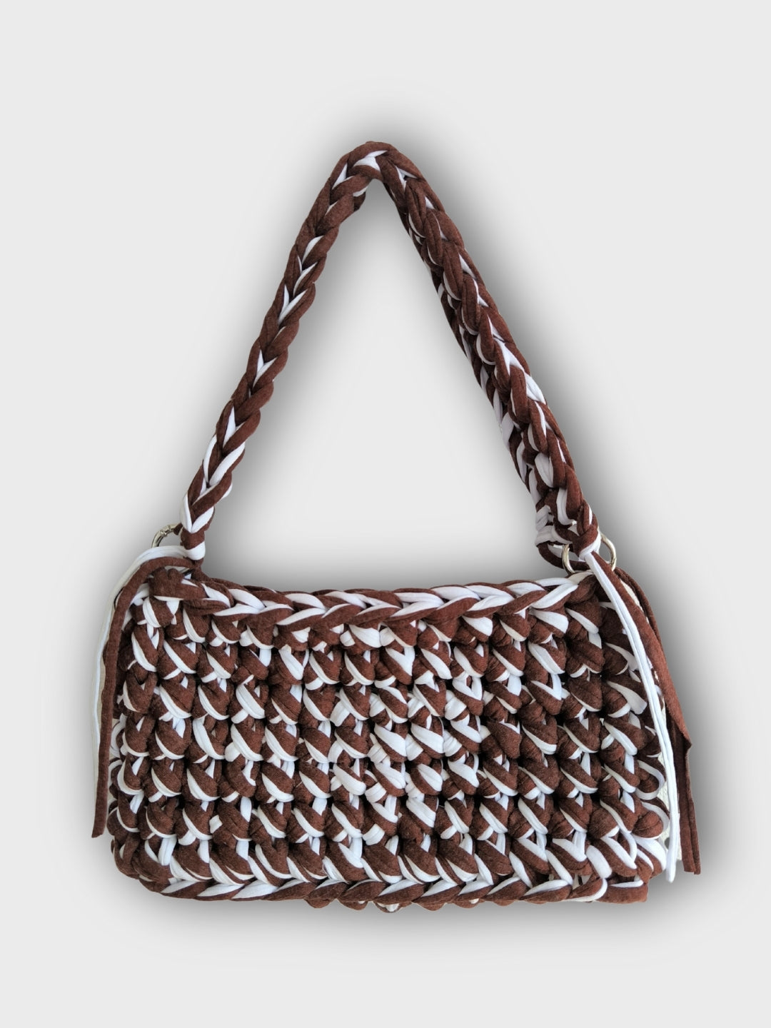 Kompaktiška, bet išraiškinga rankinė nunerta iš dvigubos, perdirbtos tekstilės virvelės – tvirta, stilinga ir draugiška aplinkai.