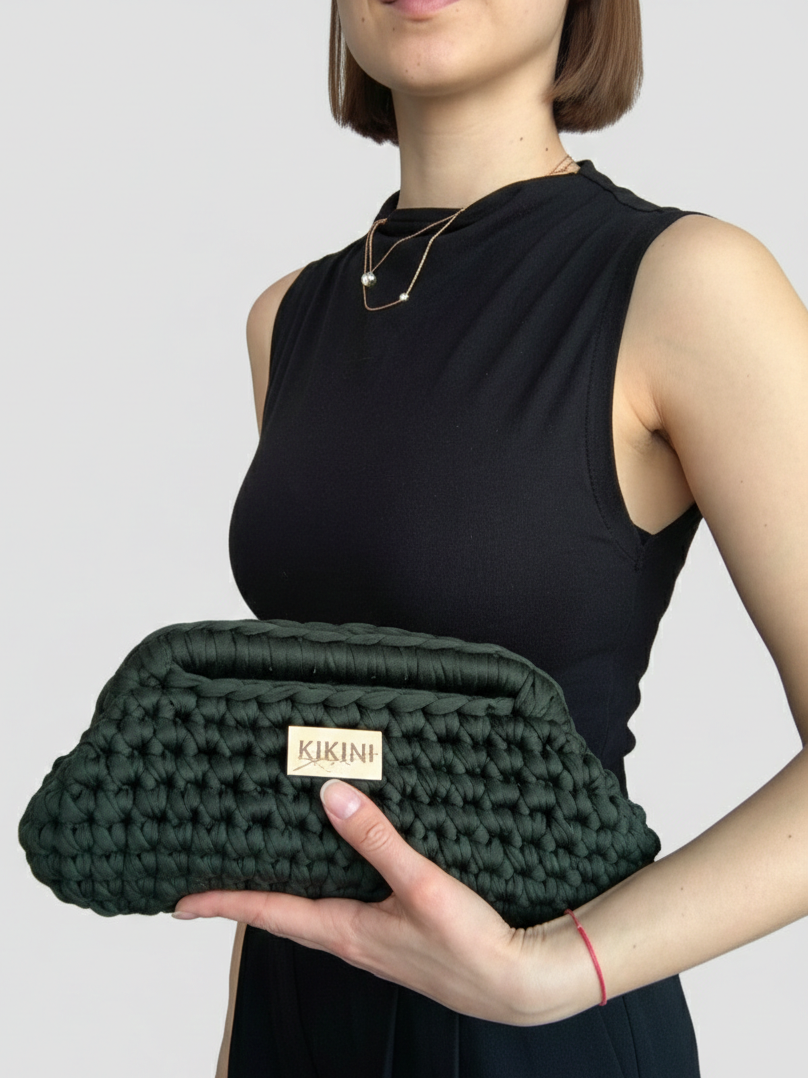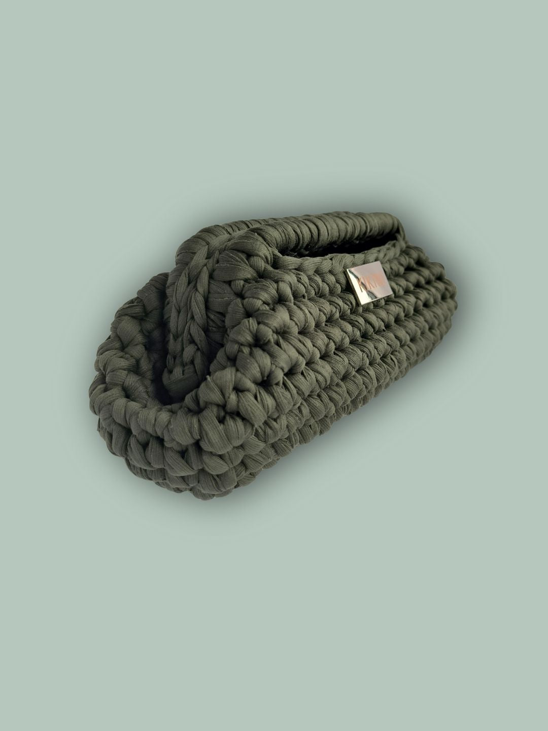 Elegantiška, bet kartu žaisminga delninė nunerta iš perdirbtos medvilnės virvelės. Metalinis rėmelis su užsegimu suteikia retro žavesio, o ergonomiškas dizainas leidžia patogiai laikyti rankoje.
