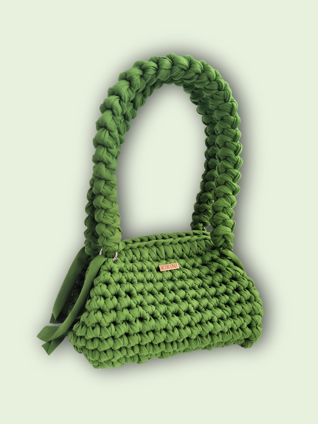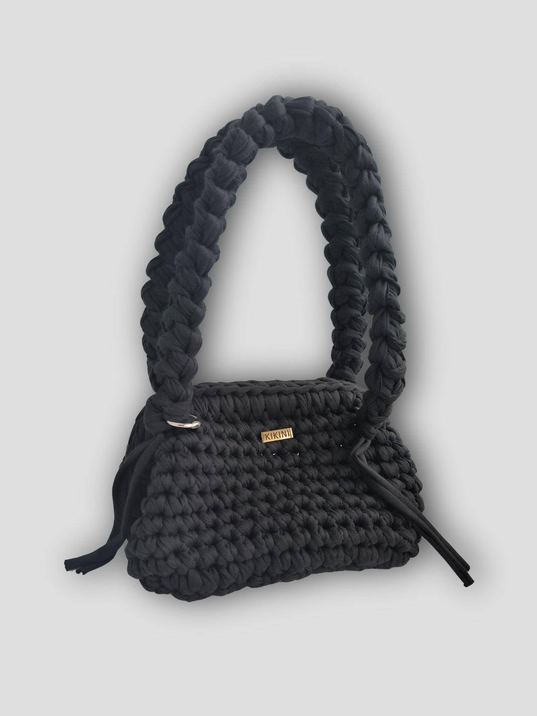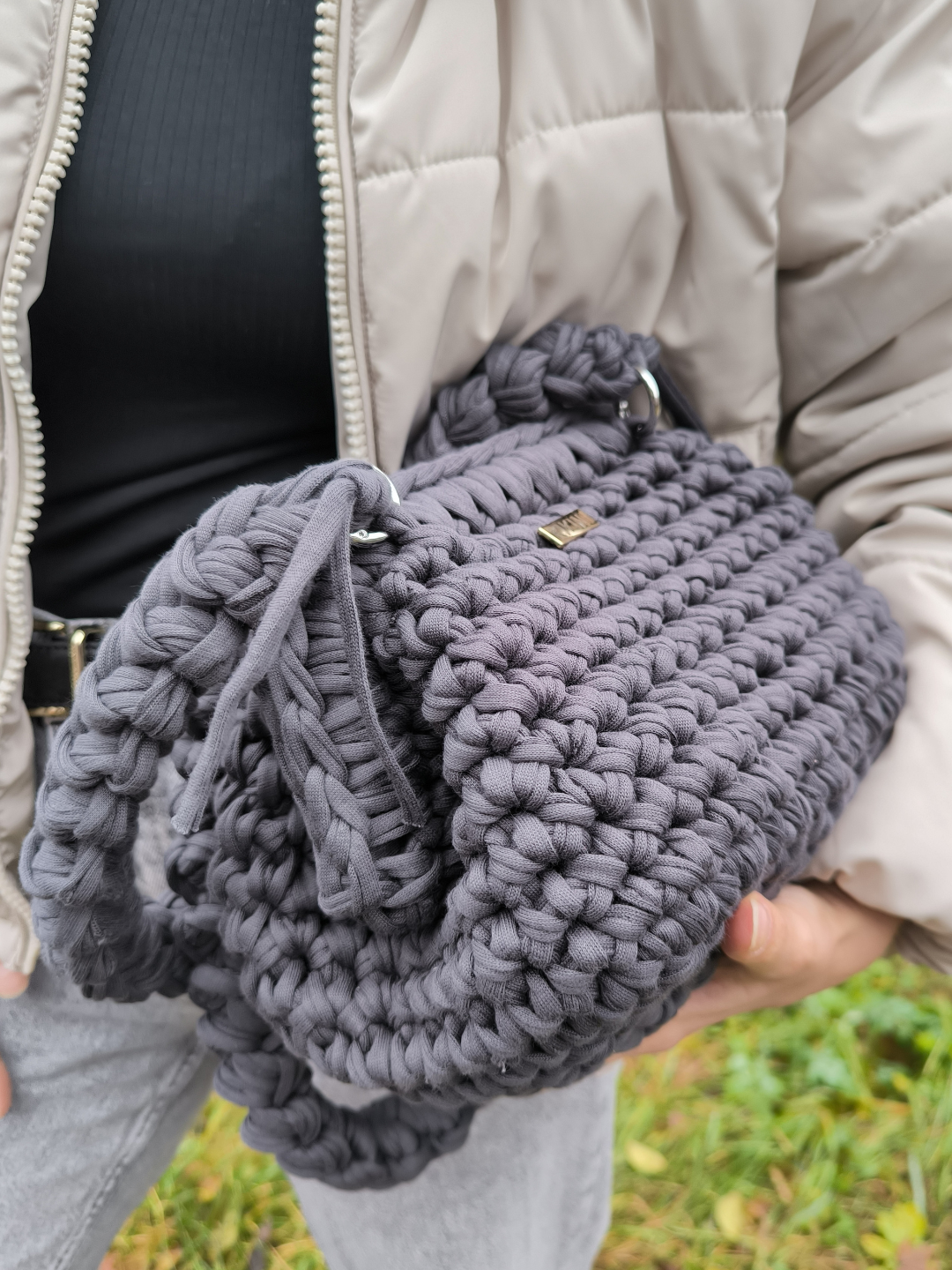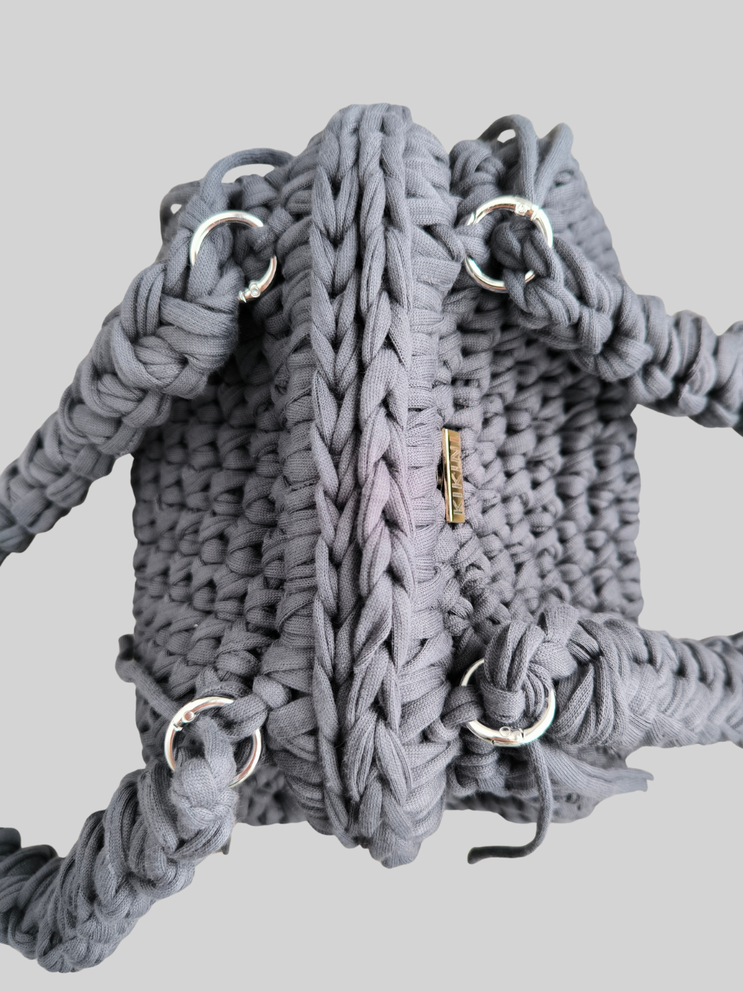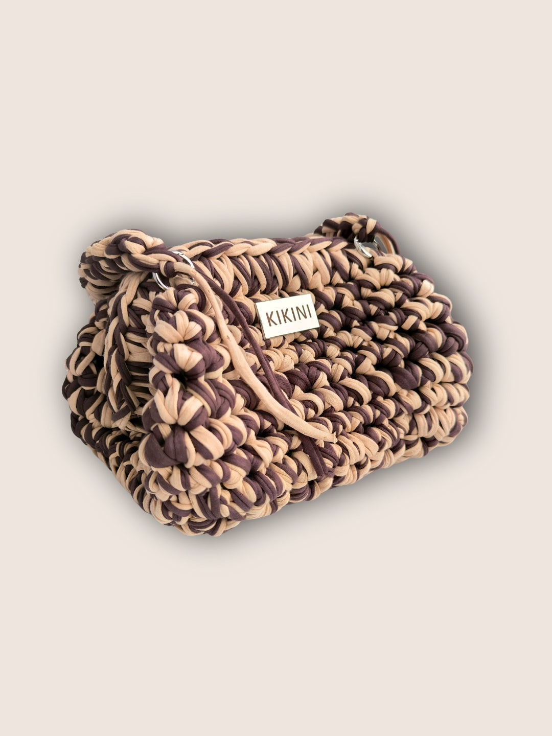 Subtili ir funkcionali, ši nerta delninė puikiai dera tiek prie kasdienio, tiek prie šventinio įvaizdžio. Nunerta iš perdirbtos medvilnės virvelės, ji išsiskiria savo tekstūra ir tvirtumu. Nuimamos rankenos suteikia lankstumo - rankinę gali nešioti rankoje kaip delninę arba su prisegtomis rankenomis ant peties.