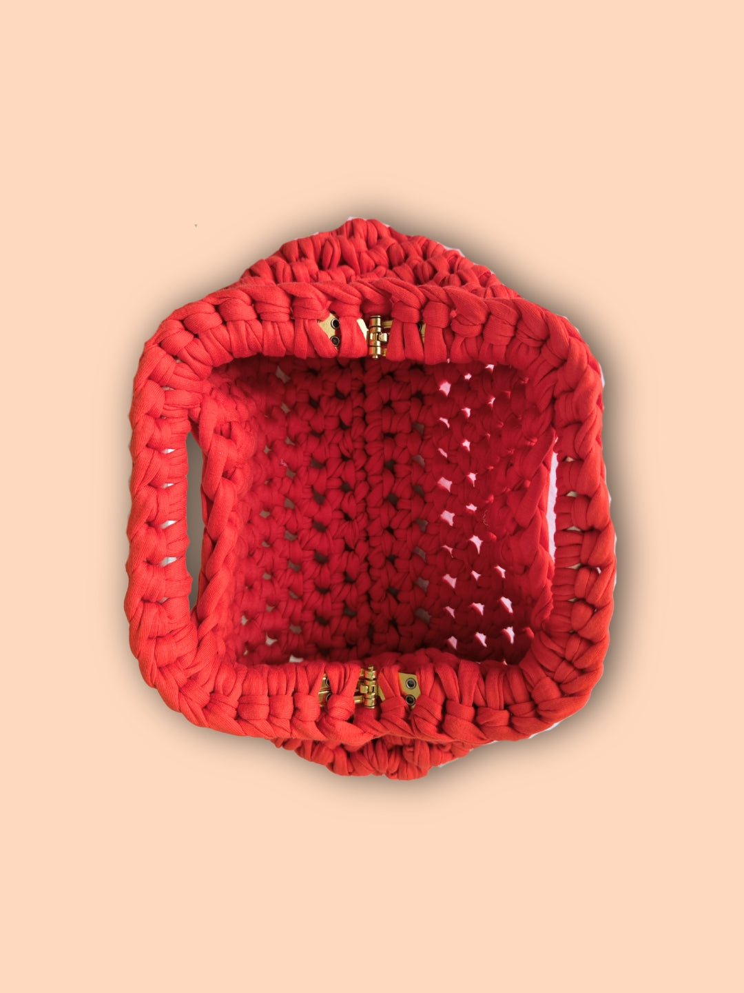 Elegantiška, bet kartu žaisminga delninė nunerta iš perdirbtos medvilnės virvelės. Metalinis rėmelis su užsegimu suteikia retro žavesio, o ergonomiškas dizainas leidžia patogiai laikyti rankoje.