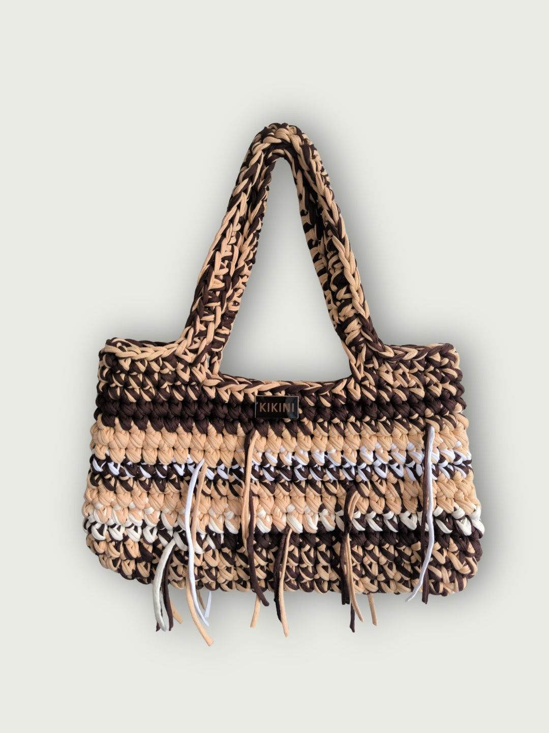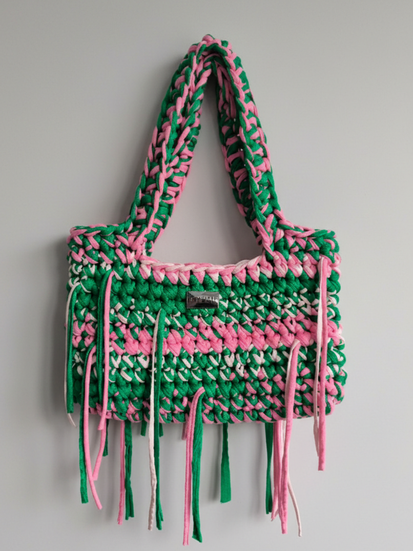 Rankų darbo: kruopščiai nerta, todėl kiekviena rankinė yra išskirtinė savo tekstūra ir charakteriu.