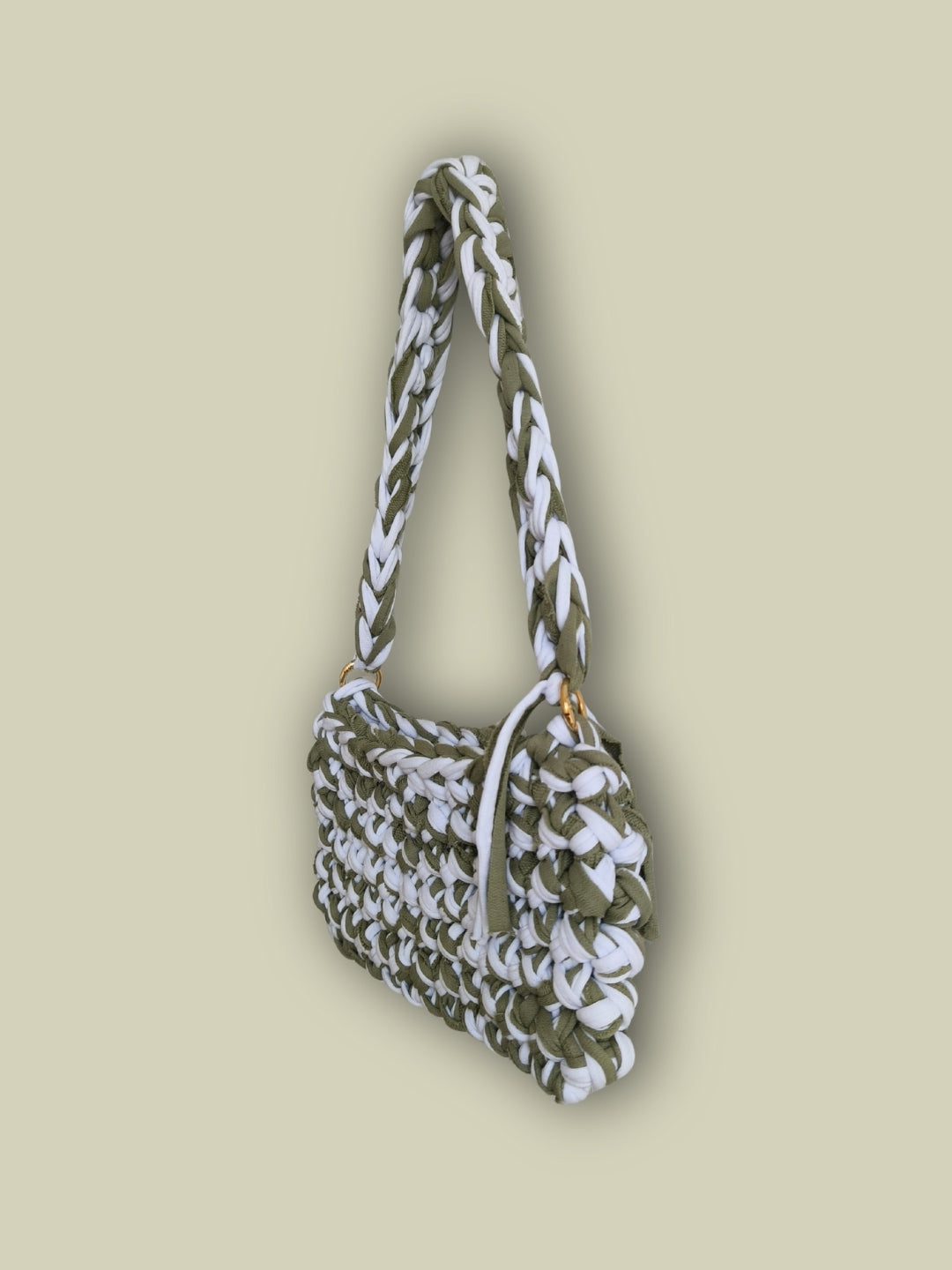 Kompaktiška, bet išraiškinga rankinė nunerta iš dvigubos, perdirbtos tekstilės virvelės – tvirta, stilinga ir draugiška aplinkai.