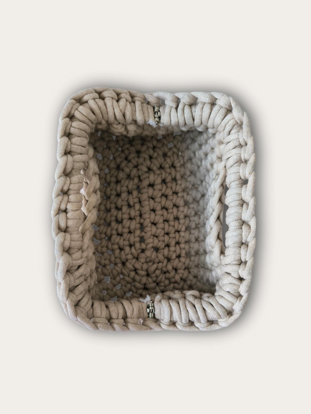 Tvirta: nunerta iš storos virvelės, užtikrinančios formą ir ilgaamžiškumą.